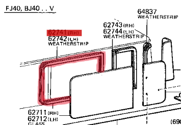 Toyota Land Cruiser FJ40 Side Window Rubber Set Fixed.